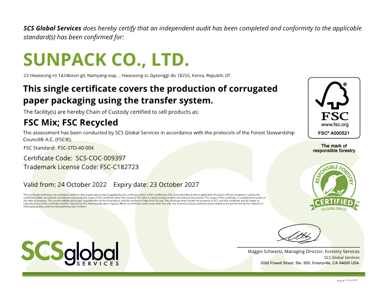 앞으로 썬팩은 끊임없는 친환경 연구 개발을 통하여 ESG확산에 앞장서도록 하겠습니다.